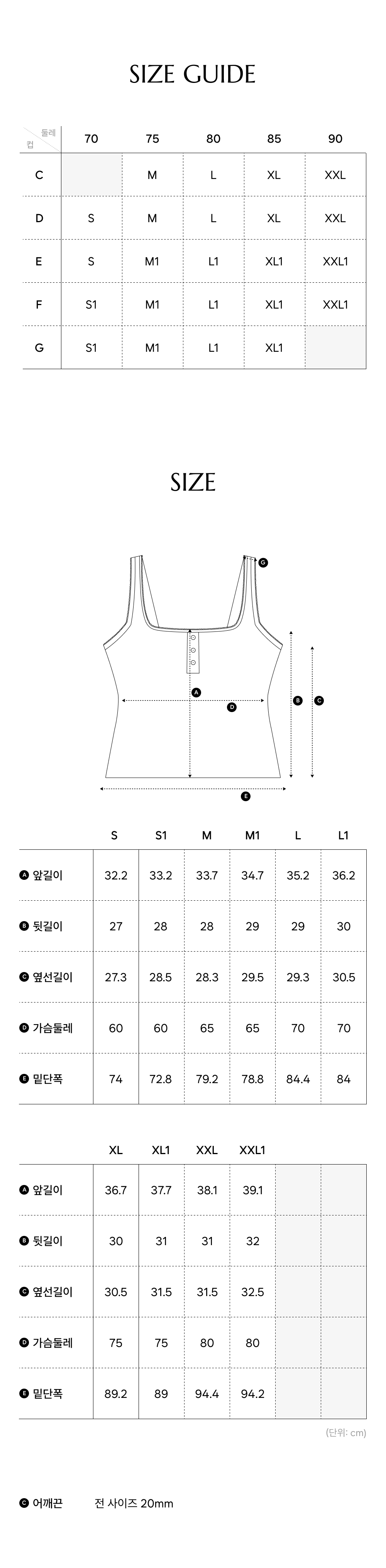 | Ä¡¼ö | S,S1(90)~M,M1(90)~L,L1(95)~XL,XL1(100)~XXL,XXL1(105) |
